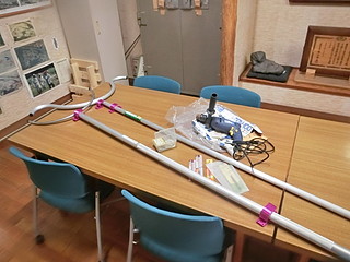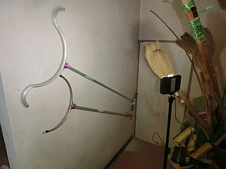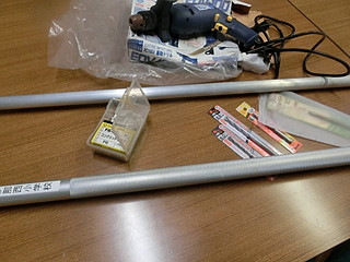 防犯訓練で、さすまたをすぐ取り出せるところに置くよう指導を受けたので、職員室前の壁に取り付けることにする。