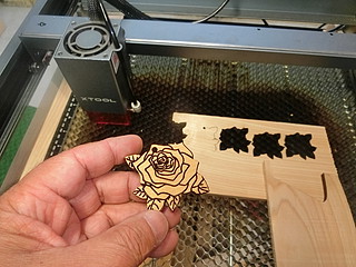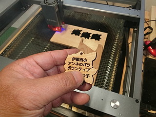 毎年お世話になっているアンネのバラボランティアさんに本校の木材とレーザー加工機でキーホルダーを作ることにした。