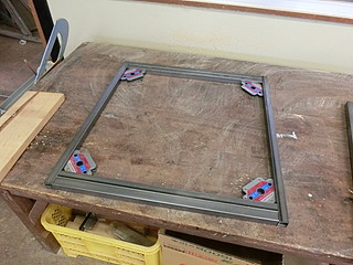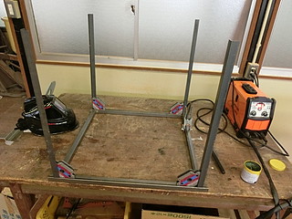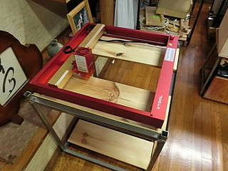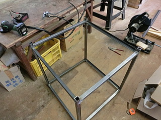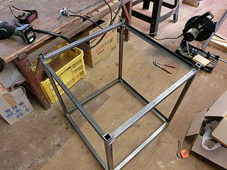 レーザ加工機をもう一台購入することになり、以前にならって専用テーブルを作った。 24mmの角パイプで枠組みをする。磁石で直角に固定できるのは便利。 板を渡す部分は、25mmのアングルを使う。 今回はちょうど加工機が載るだけの大きさにしてコンパクトに仕上げた。