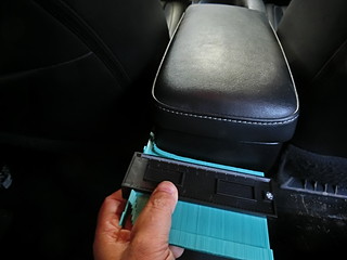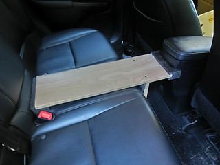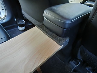 たまたま、後座席の肘掛けがないので、今後はそれも視野に入れてこんな形で基部を作った。