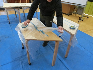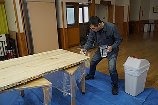 最後は塗装になるが、なんと教頭先生の実家は塗装業だったのでプロの道具と塗料を使うことができた。