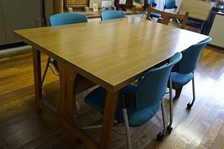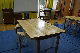 3日くらいかけて全ての塗装が終わり、前の机の天板と差し替える。コーススレッドで止まっていただけなので簡単に変えることができた。
