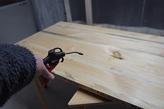 乾く度に600番のペーパーを当てて、コンプレッサーで埃を飛ばす。部屋の中と渡り廊下とで作業をした。