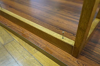 今回は柾目挽きした板を使ったものの、多少は反りが出てしまった。しかし業者さんにも指導いただき、無理矢理締めることはやめて足の高さを3Dプリンタで作成した靴を履かせて調整することでがたつきをなくして使っている。