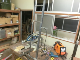 今回テレビをご寄付頂いたので、ストックしてあった鉄骨でスタンドを溶接する。